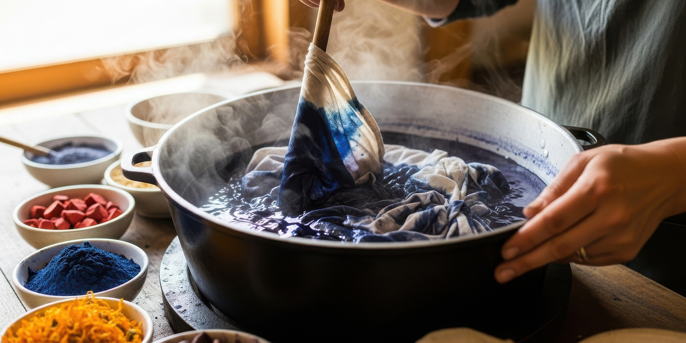 Vous dessinez, pliez, nouez, cirez ou imprimez votre motif selon la technique choisie. Le tissu est plongé dans la teinture, puis rincé pour laisser apparaître votre création aux contrastes vibrants.