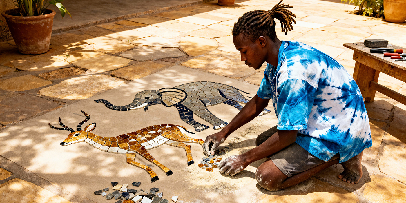 Explorez l’univers coloré de la mosaïque artisanale dans le cadre inspirant de Toubab Dialaw, village côtier réputé pour sa vie artistique, ses ateliers de créateurs et son ambiance bohème. Dans cet atelier accessible à tous, vous apprenez à transformer des fragments de verre, de céramique ou de matériaux naturels en une pièce décorative unique, guidé par un artisan local.