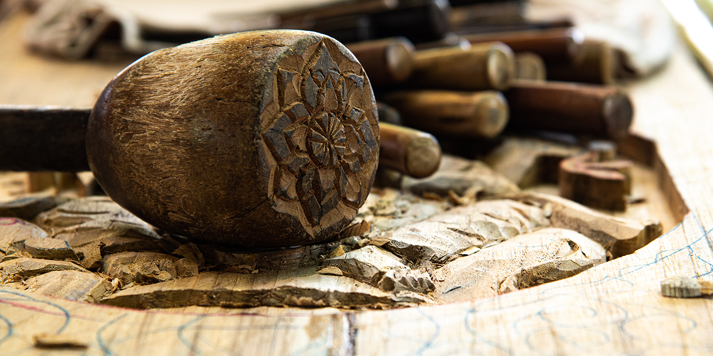 • outils traditionnels (gouges, couteaux, burins, maillets),